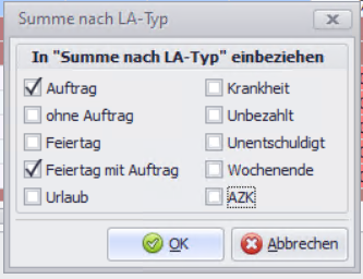 Hier kann eingestellt werden, welche Lohnarten in der Summenanzeige berücksichtigt werden sollen.