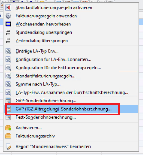 3. Im neuen Fenster „GVP (IGZ Altregelung) – Sonderlohnberechnung…“ öffnen.
