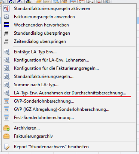 3. Wählen Sie im neuen Fenster diesmal: „LA-Typ-Erw. Ausnahmen der Durchschnittsberechnung…“