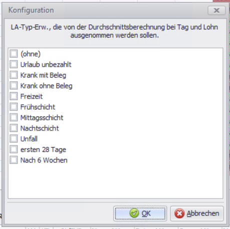 Legen Sie nun fest, welche LA-Typ-Erweitert, von der Durchschnittsberechnung bei Tag und Lohn ausgenommen werden sollen.