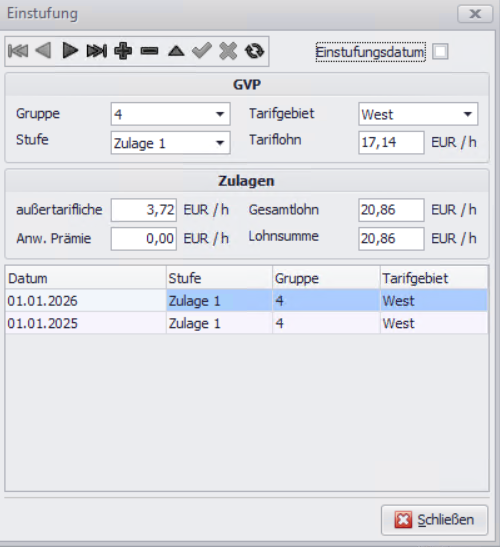 • In der Übersicht sehen Sie, zu welchem Datum Einstufungsänderungen geplant oder erfolgt sind.