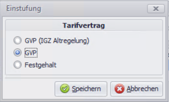 • Wählen Sie Ihren Tarifvertrag (z.B. GVP)aus und klicken Sie auf Speichern.
