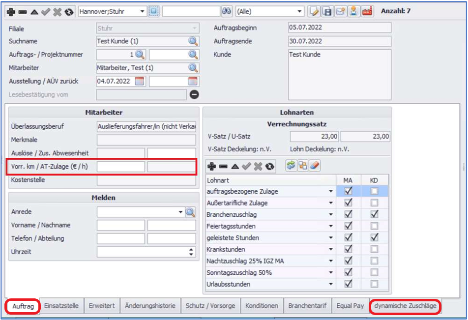 Ebenfalls im Auftrag, im Reiter „dynamische Zuschläge“, tragen Sie den Zuschlag mit einer Gültigkeit ab einem bestimmten Datum ein.