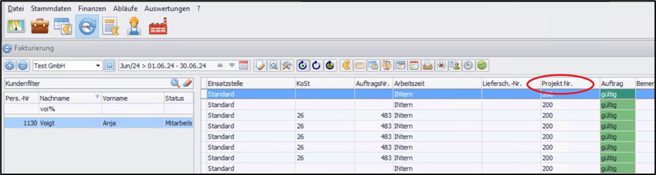 In der Fakturierung wird auch die Projektnummer gezogen: