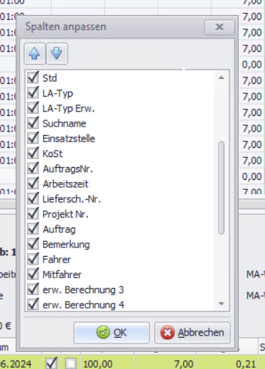 Im neuen Fenster werden die einzelnen Spalten aufgelistet.