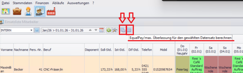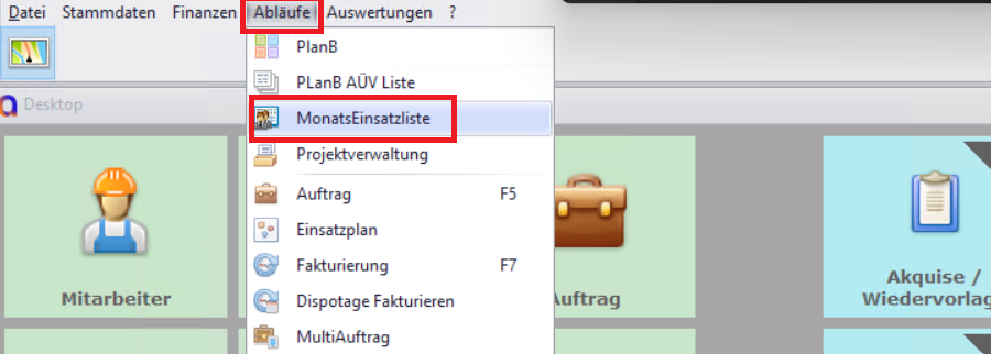 Abläufe → MonatsEinsatzliste (Einsatzliste Mitarbeiter).