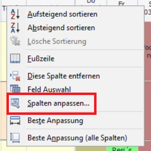 - Rechtsklick auf die Kopfzeile