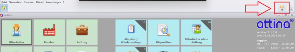 Neue Nachrichten von Com Now erkennen Sie außerdem an der gelb blinkenden Lampe oben rechts in Attina.