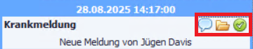 - Über das Ordner-Symbol öffnen Sie direkt den entsprechenden Urlaubsantrag oder die Krankmeldung.