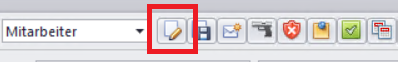 Dazu im Modul „Mitarbeiter“ oben in der Menüleiste auf das Symbol „Bearbeiten“ (Zettel und Stift) klicken.