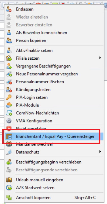 Wählen Sie anschließend „Branchentarif / Equal Pay – Quereinsteiger“ aus.